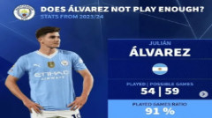 Alvarez ra sân 54 lần cho Manchester City mùa trước